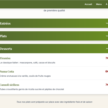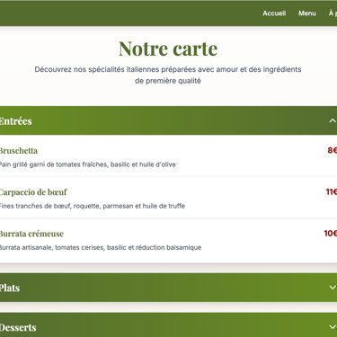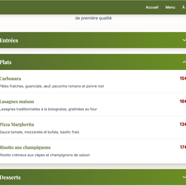 Un design épuré et responsive qui met en valeur votre cuisine et facilite la navigation sur tous les appareils.